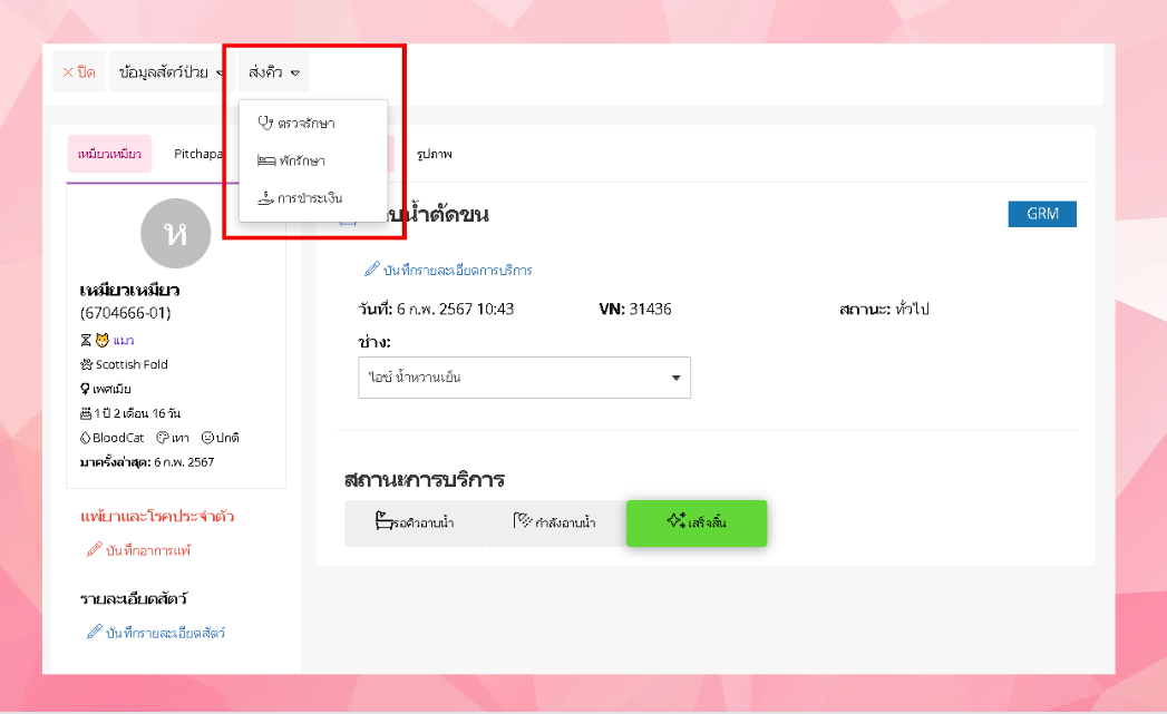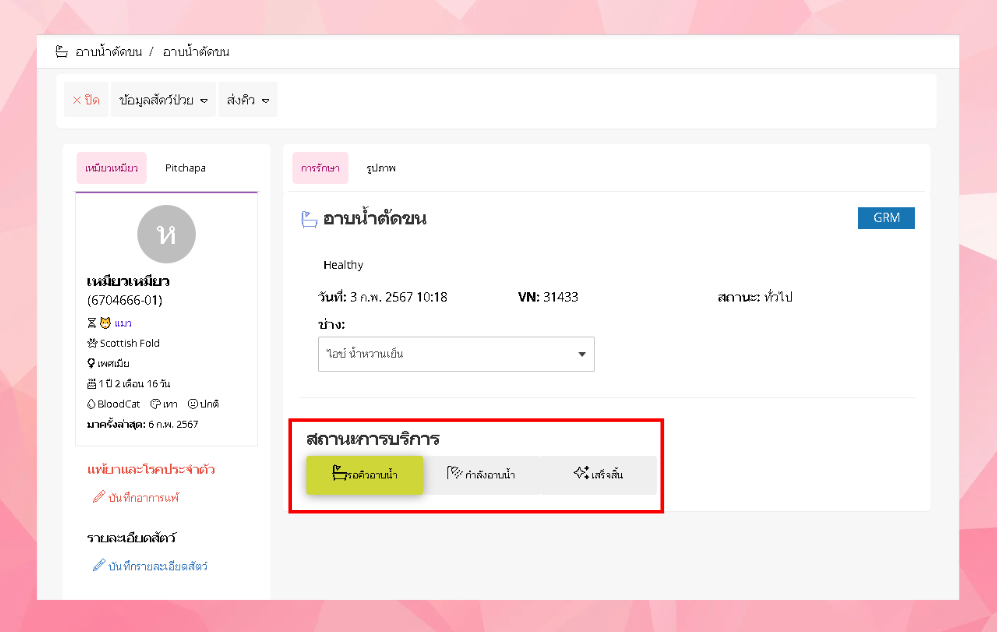 ขั้นตอนการส่งคิวรอรับการอาบน้ำตัดขน