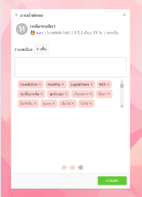 • ผู้ใช้งานเลือกชื่อสัตว์ที่ต้องการส่งคิวรอรับบริการอาบน้ำตัดขน