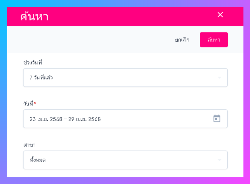 - ระบุช่วงวัน ที่ต้องการค้นหา