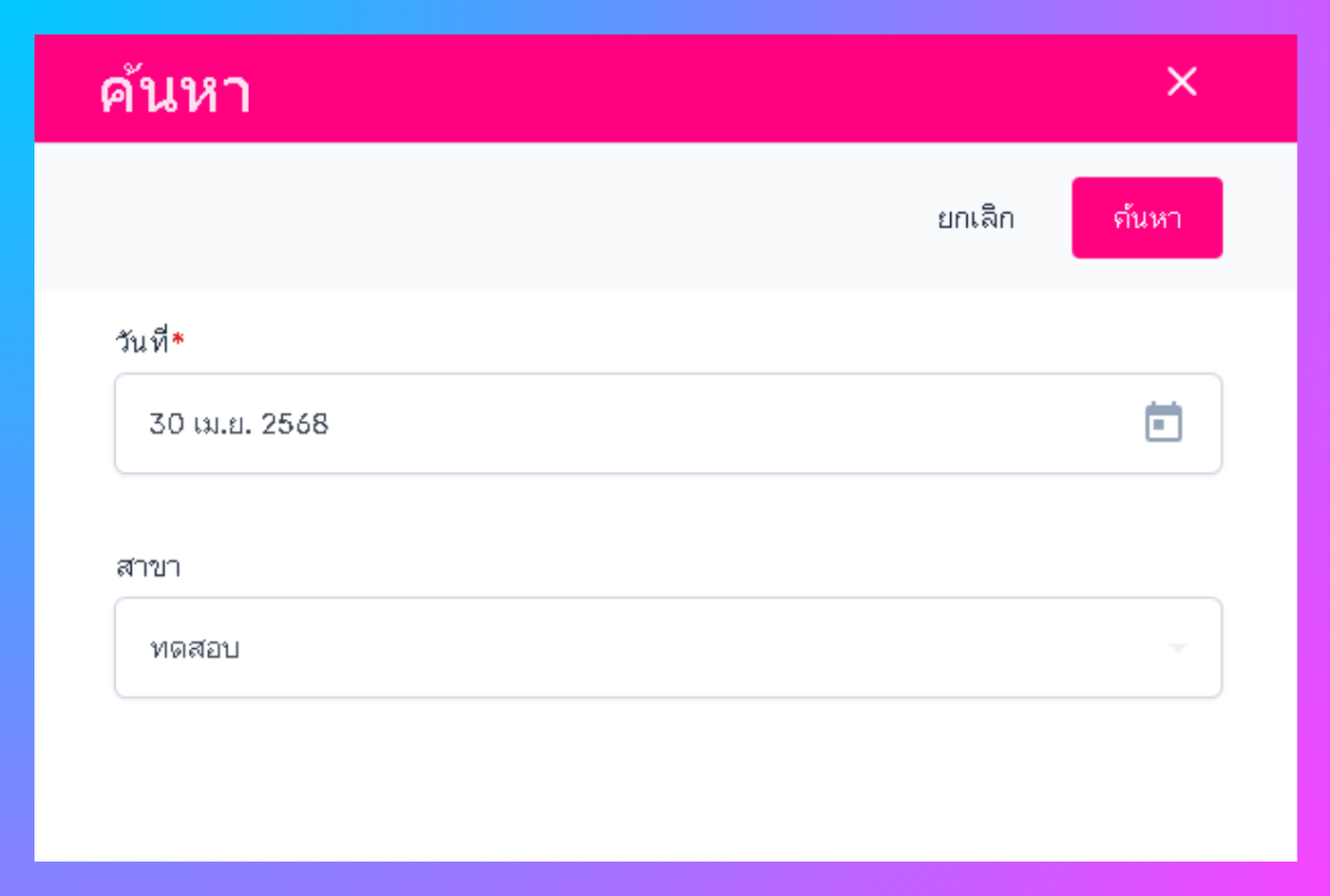 - เลือกวันที่และสาขาที่ต้องการสรุปรายได้ประจำวัน
