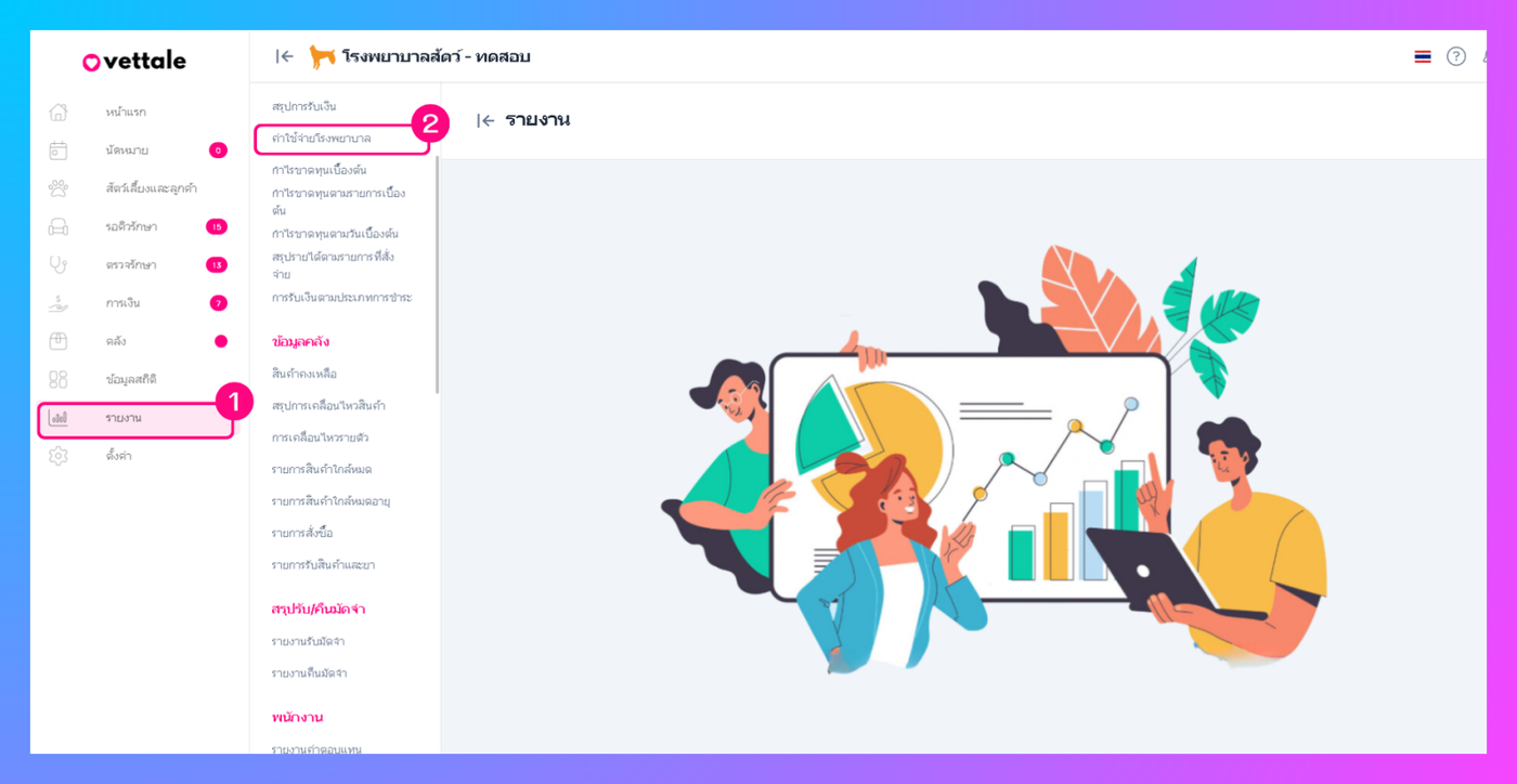 - ไปที่เมนูรายงาน