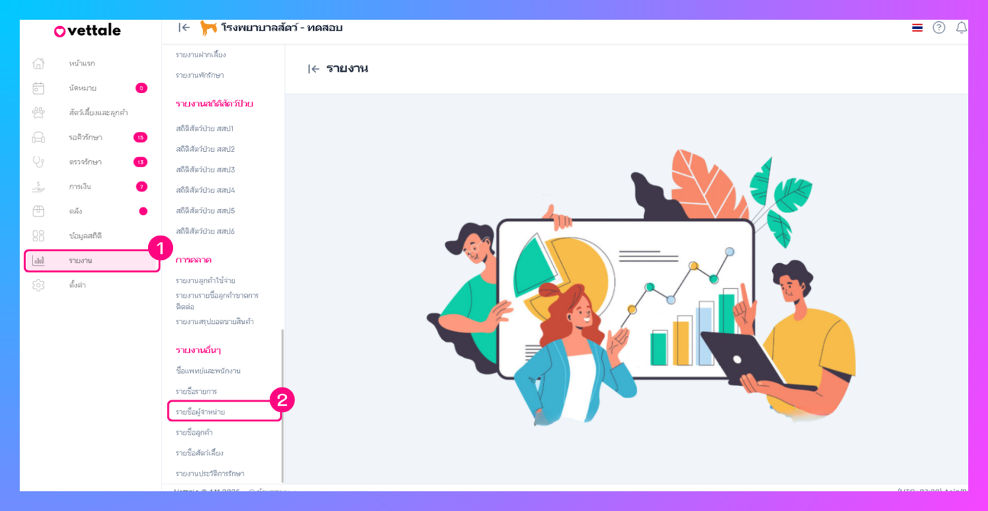 ไปที่เมนูรายงาน > คลิกรายชื่อรายชื่อผู้จำหน่าย