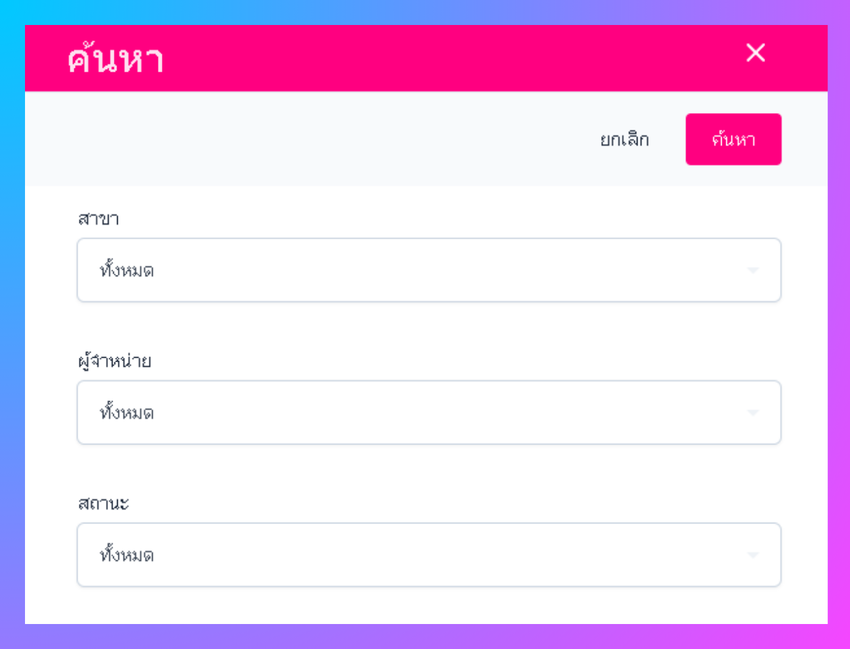 - เลือก สาขาทั้งหมดหรือสาขาต้องการ