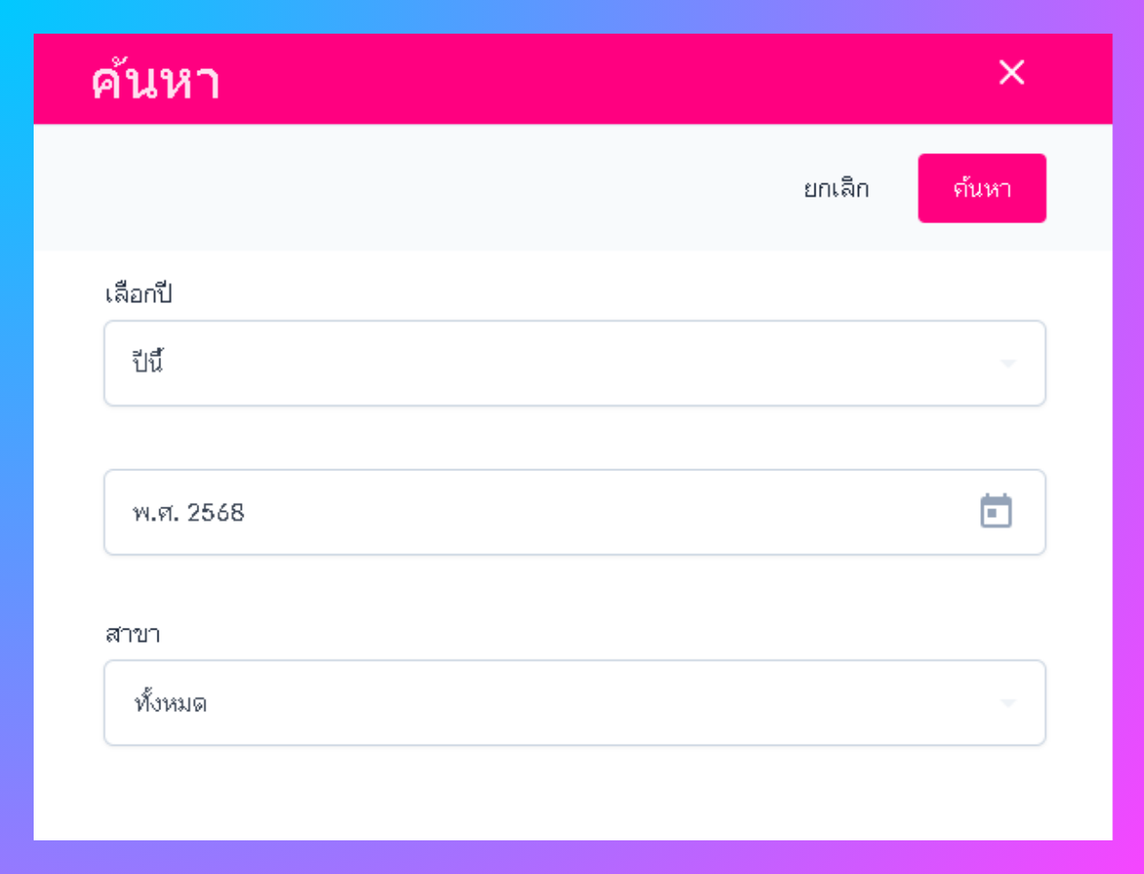 - ระบุช่วงปี และสาขา ที่ต้องการค้นหา