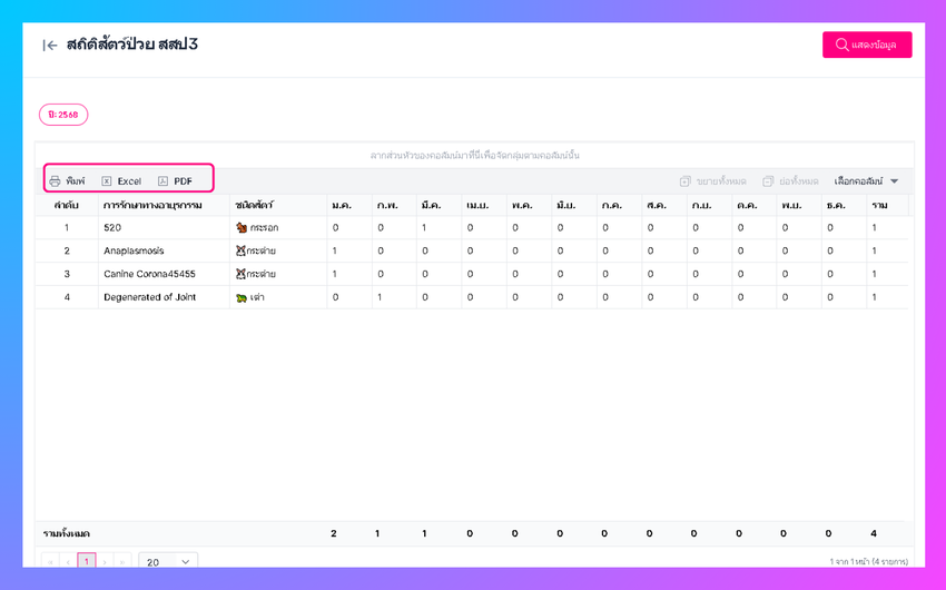 - คลิก สถิติสัตว์ป่วย สสป.3