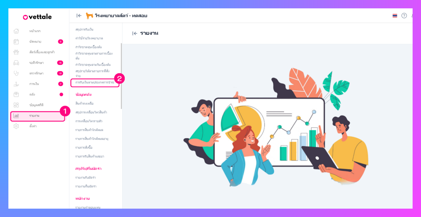 การทำงานของระบบนี้จะช่วยให้ผู้ใช้สามารถดูแลและติดตามการชำระเงินของลูกค้าตามประเภทการชำระต่าง ๆ ได้โดยรวดเร็ว ซึ่งทำให้ง่ายต่อการวิเคราะห์ข้อมูลการเงินและบริหารจัดการการเงินของคลินิก