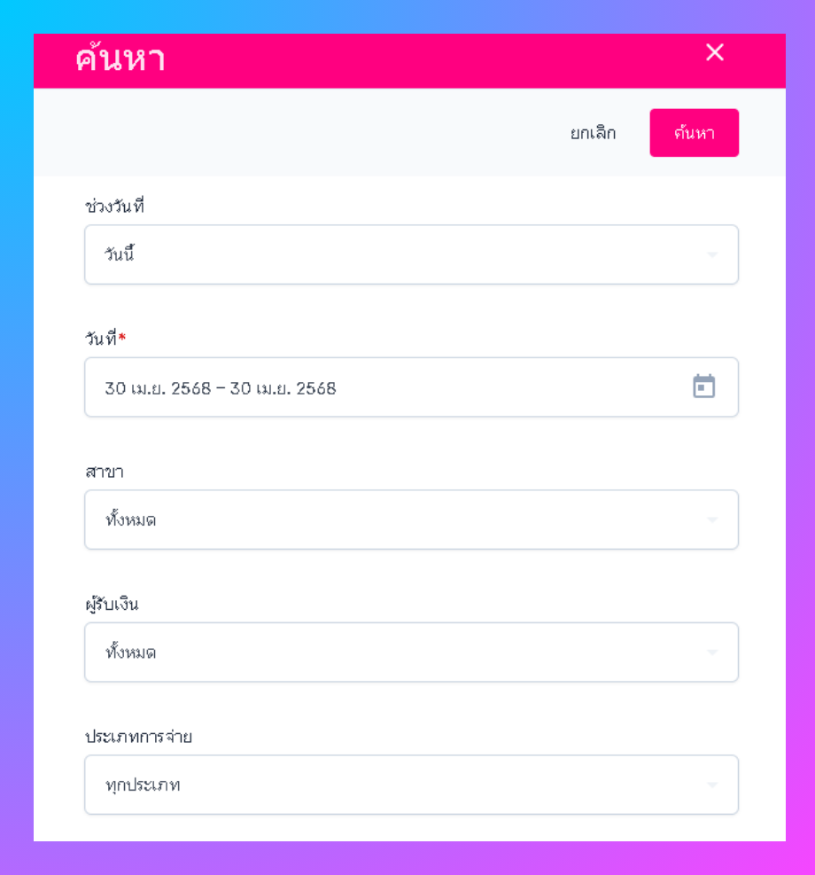 - ผู้รับเงิน ผู้ใช้งานเลือกผู้รับเงินที่ต้องการค้นหา