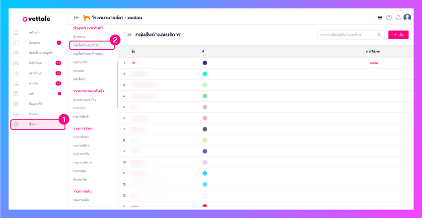 หากผู้ใช้งานต้องการตั้งค่ากลุ่มสินค้าและบริการ ทำได้โดยการไปที่เมนูตั้งค่า> ข้อมูลเกี่ยวกับสินค้า>กลุ่มสินค้าและบริการ