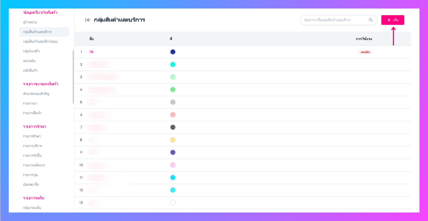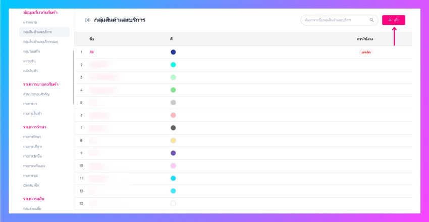 เมื่อผู้ใช้งานเข้าสู่หน้าสินค้าและบริการ ให้ผู้ใช้งานคลิกปุ่ม "เพิ่ม"